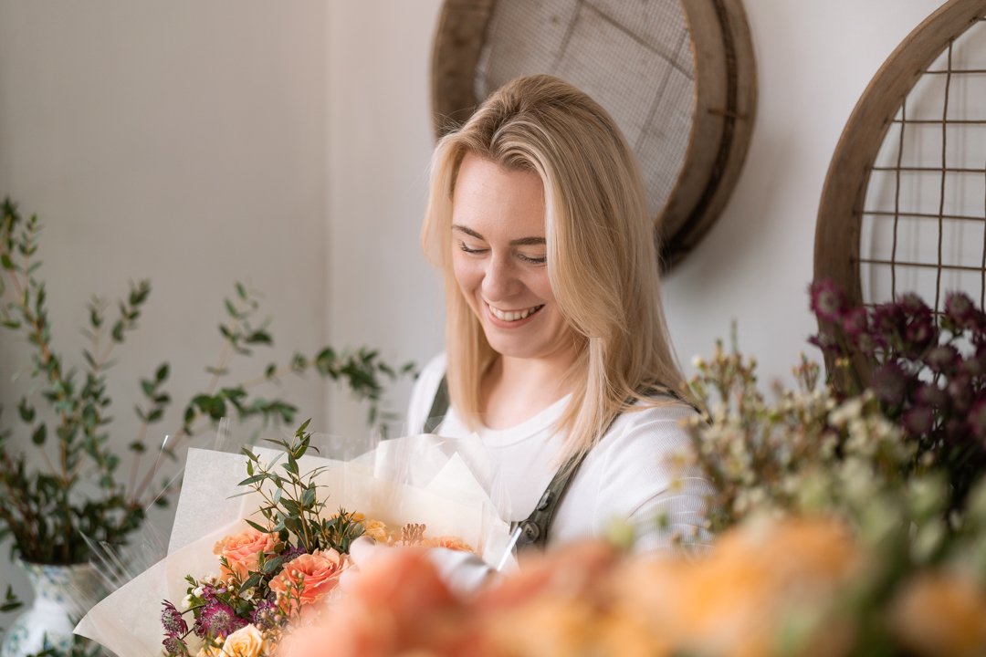 Even though it was the first time we had properly met in person, it felt easy and familiar. Seeing everything we had planned through mood boards and conversations come together so naturally was a real joy. It’s a perfect example of why personal branding photography for florists works best when we lean into the authentic, ‘unpolished’ moments of the craft.